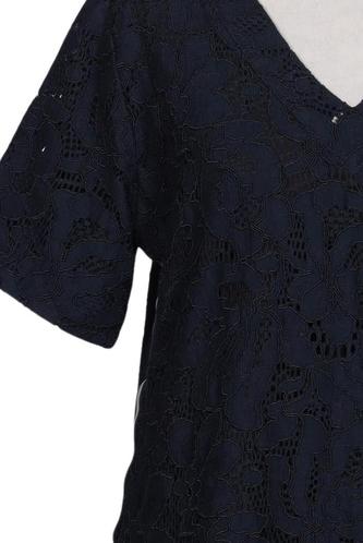 | Details | Spitze, Kurzarm, V-Ausschnitt, Reißverschluss/Knöpfe hinten, Floral |