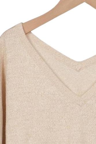 | Details | Grobstrick, Dreiviertelarm, V-Ausschnitt, Einfarbig |