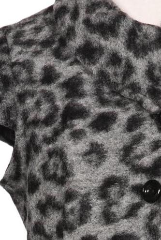 | Details | Grobstrick, Kurzarm, V-Ausschnitt, Front Knopfleiste, Leopard |