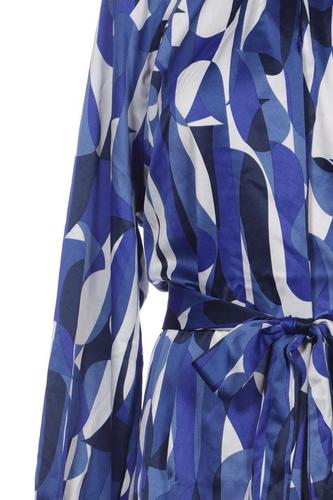 | Details | Satin, Langarm, Bindegürtel, V-Ausschnitt, Motivprint |