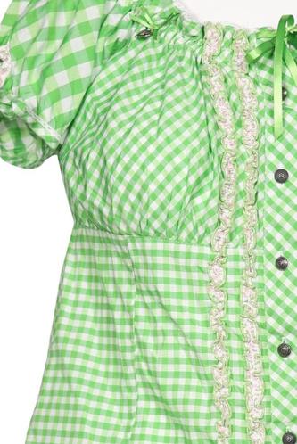 | Details | Rüschen, Kurzarm, Front Knopfleiste, Kariert |