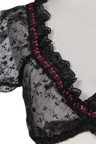 | Details | Spitze, Rüschen, Kurzarm, V-Ausschnitt, verschlusslos, Floral |