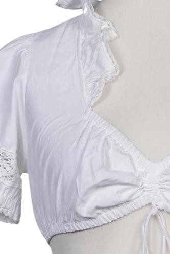 | Details | Rüschen, Kurzarm, V-Ausschnitt, verschlusslos, Gummizug/Tunnelzug, Einfarbig |