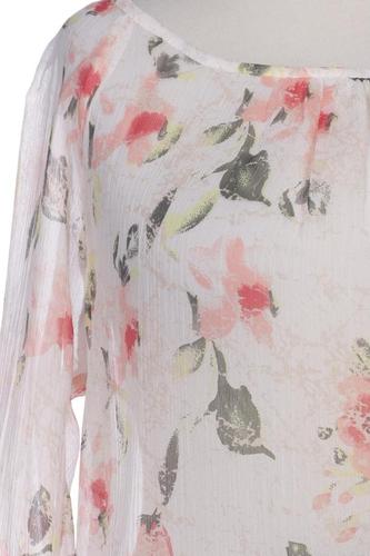 | Details | Chiffon, Dreiviertelarm, Rundhals, verschlusslos, Floral |