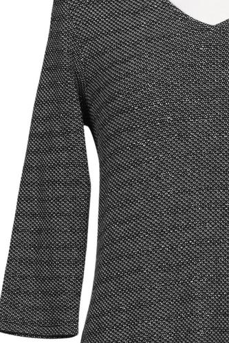 | Details | Grobstrick, Dreiviertelarm, V-Ausschnitt, Reißverschluss/Knöpfe hinten, Streifen |