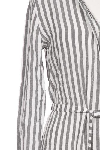 | Details | Langarm, Bindegürtel, V-Ausschnitt, Front Knopfleiste, Streifen |