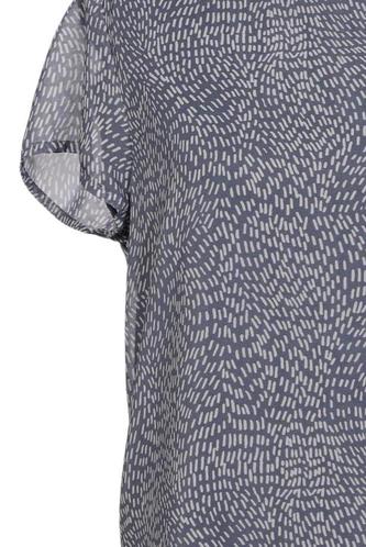 | Details | Chiffon, Kurzarm, Rundhals, Reißverschluss/Knöpfe hinten, Motivprint |