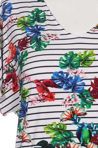 | Details | Jersey, V-Ausschnitt, Floral, Streifen |