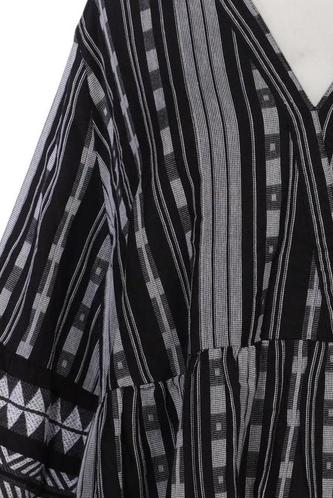 | Details | Jersey, Dreiviertelarm, V-Ausschnitt, Ethno, Streifen |