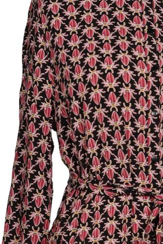 | Details | Langarm, Bindegürtel, Rundhals, Front Knopfleiste, Floral |