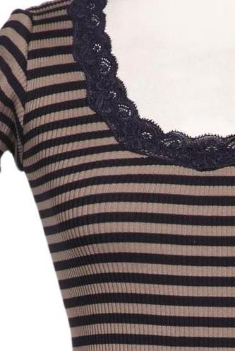 | Details | Jersey, Spitze, V-Ausschnitt, Streifen |
