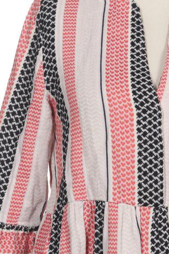 | Details | Jersey, Rüschen, Dreiviertelarm, V-Ausschnitt, verschlusslos, Streifen |