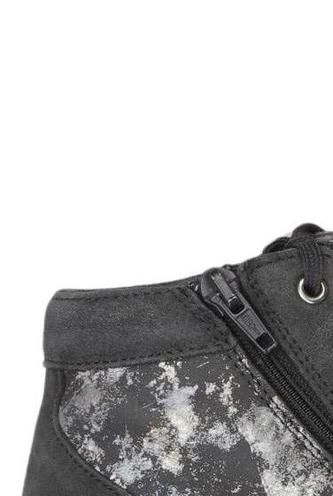 | Details | Wildlederoptik, Schnürung, Gummi, metallic, Seitreißverschluss, Motivprint |