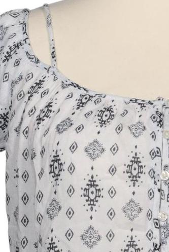 | Details | Rüschen, Chiffon, Kurzarm, Rundhals, verschlusslos, Ethno |