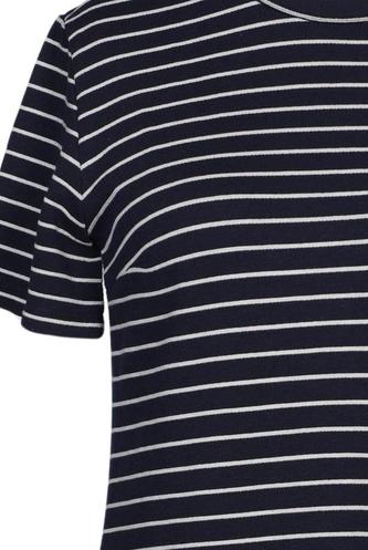 | Details | Jersey, Kurzarm, Rundhals, Reißverschluss/Knöpfe hinten, Streifen |