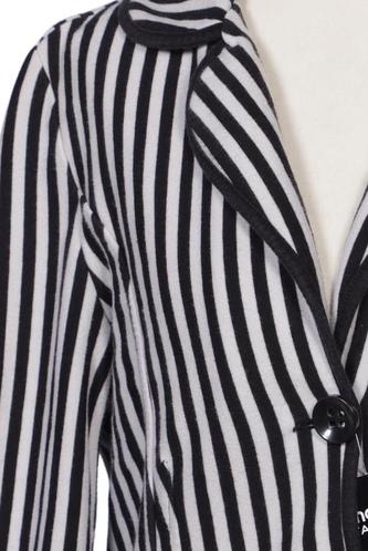 | Details | Langarm, V-Ausschnitt, Front Knopfleiste, Streifen |