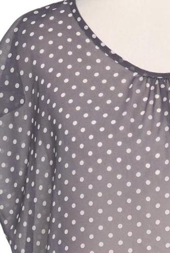 | Details | Chiffon, Kurzarm, Rundhals, verschlusslos, Punkte |