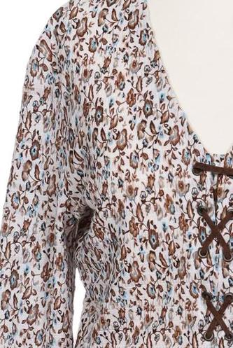 | Details | Schnürung, Langarm, V-Ausschnitt, verschlusslos, Floral |