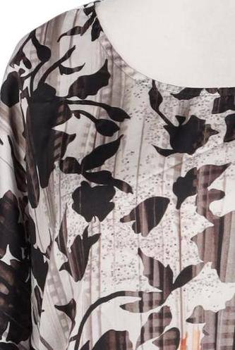 | Details | Satin, Dreiviertelarm, Rundhals, verschlusslos, Motivprint |