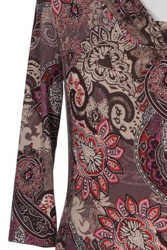 | Details | Jersey, Rüschen, Dreiviertelarm, V-Ausschnitt, Paisley |