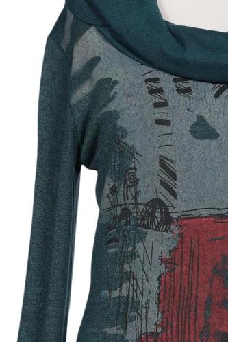 | Details | Grobstrick, Langarm, Rollkragen, Motivprint |