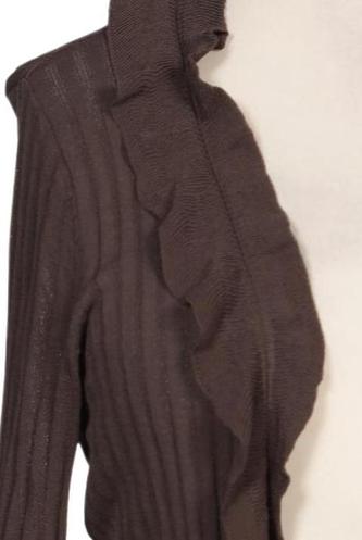 | Details | Rüschen, Grobstrick, Langarm, Bindegürtel, verschlusslos, Einfarbig |