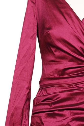 | Details | Satin, Plissee, Langarm, Wickeloptik, V-Ausschnitt, Einfarbig |