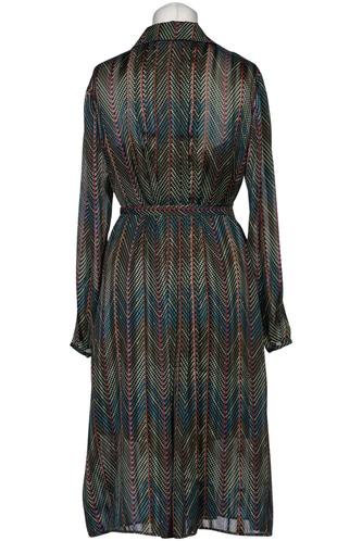 | Details | Satin, Langarm, Bindegürtel, V-Ausschnitt, Front Knopfleiste, Motivprint |