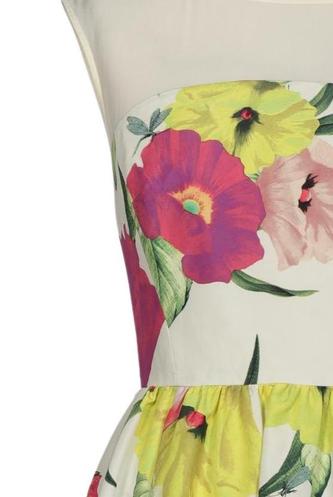 | Details | ärmellos, Rundhals, Reißverschluss/Knöpfe hinten, Floral |