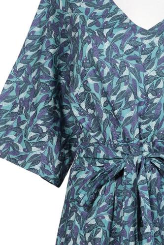 | Details | Kurzarm, Bindegürtel, V-Ausschnitt, Floral |