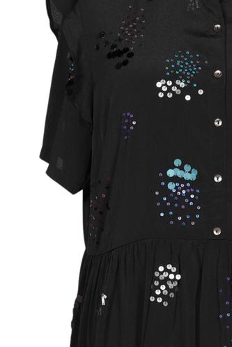 | Details | Pailletten, Chiffon, Kurzarm, Rundhals, Front Knopfleiste, Motivprint |