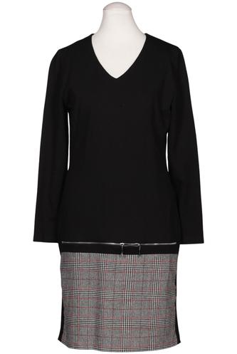 | Details | Jersey, Langarm, Bindegürtel, V-Ausschnitt, Reißverschluss/Knöpfe hinten, Kariert |