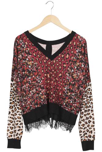 | Details | Fransen, Grobstrick, Langarm, V-Ausschnitt, Leopard |