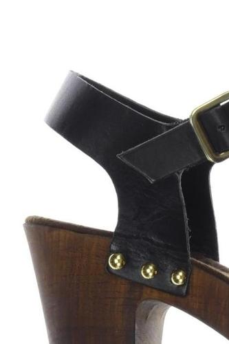 | Details | Wildlederoptik, Schnallen, Metall, Holz, Stollen |