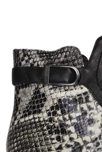 | Details | Prägeleder, Schnallen, Seitreißverschluss, Motivprint |