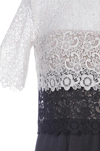 | Details | Spitze, Kurzarm, Rundhals, Reißverschluss/Knöpfe hinten, Floral |