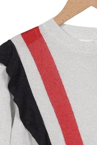 | Details | Rüschen, Grobstrick, Langarm, Rundhals, Streifen |