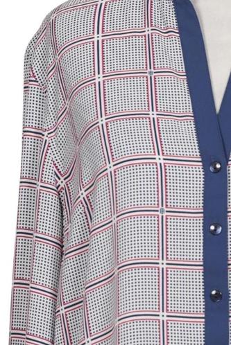 | Details | Langarm, Knopfleiste, V-Ausschnitt, Motivprint |