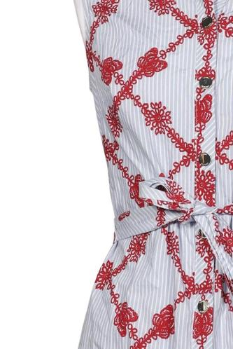 | Details | ärmellos, Bindegürtel, Rundhals, Front Knopfleiste, Floral |