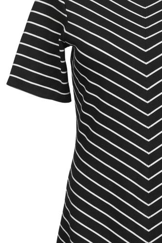 | Details | Jersey, Kurzarm, Rundhals, Reißverschluss/Knöpfe hinten, Streifen |