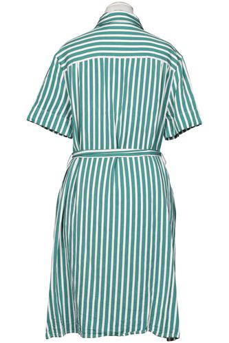 | Details | Kurzarm, Bindegürtel, Rundhals, Front Knopfleiste, Streifen |