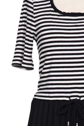 | Details | Jersey, Plissee, Kurzarm, Rundhals, Gummizug/Tunnelzug, Streifen |