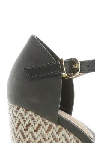 | Details | Wildlederoptik, Schnallen, Gummi, Bast |