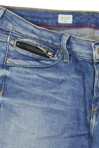 | Details | Jeans, Bindegürtel, Front Reißverschluss, Used Look |