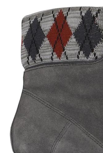 | Details | Wildlederoptik, Schnürung, Gummi, Rauten |