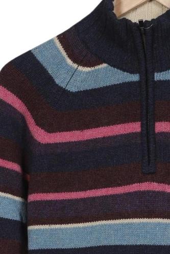 | Details | Grobstrick, Langarm, Rollkragen, Streifen |