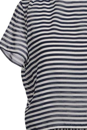 | Details | Chiffon, Kurzarm, Bindegürtel, Rundhals, Streifen |