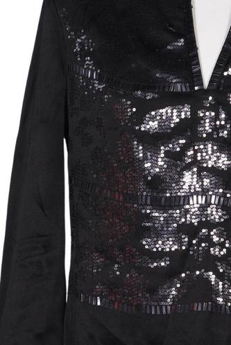| Details | Satin, metallic, Dreiviertelarm, V-Ausschnitt, Reißverschluss/Knöpfe hinten, Einfarbig |