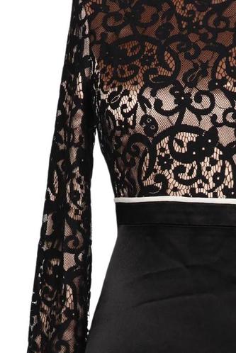 | Details | Satin, Spitze, Langarm, Rundhals, Reißverschluss/Knöpfe hinten, Floral |