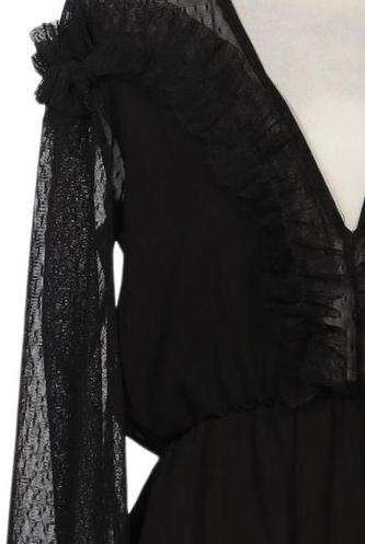 | Details | Rüschen, Chiffon, Langarm, V-Ausschnitt, Reißverschluss/Knöpfe hinten, Einfarbig |